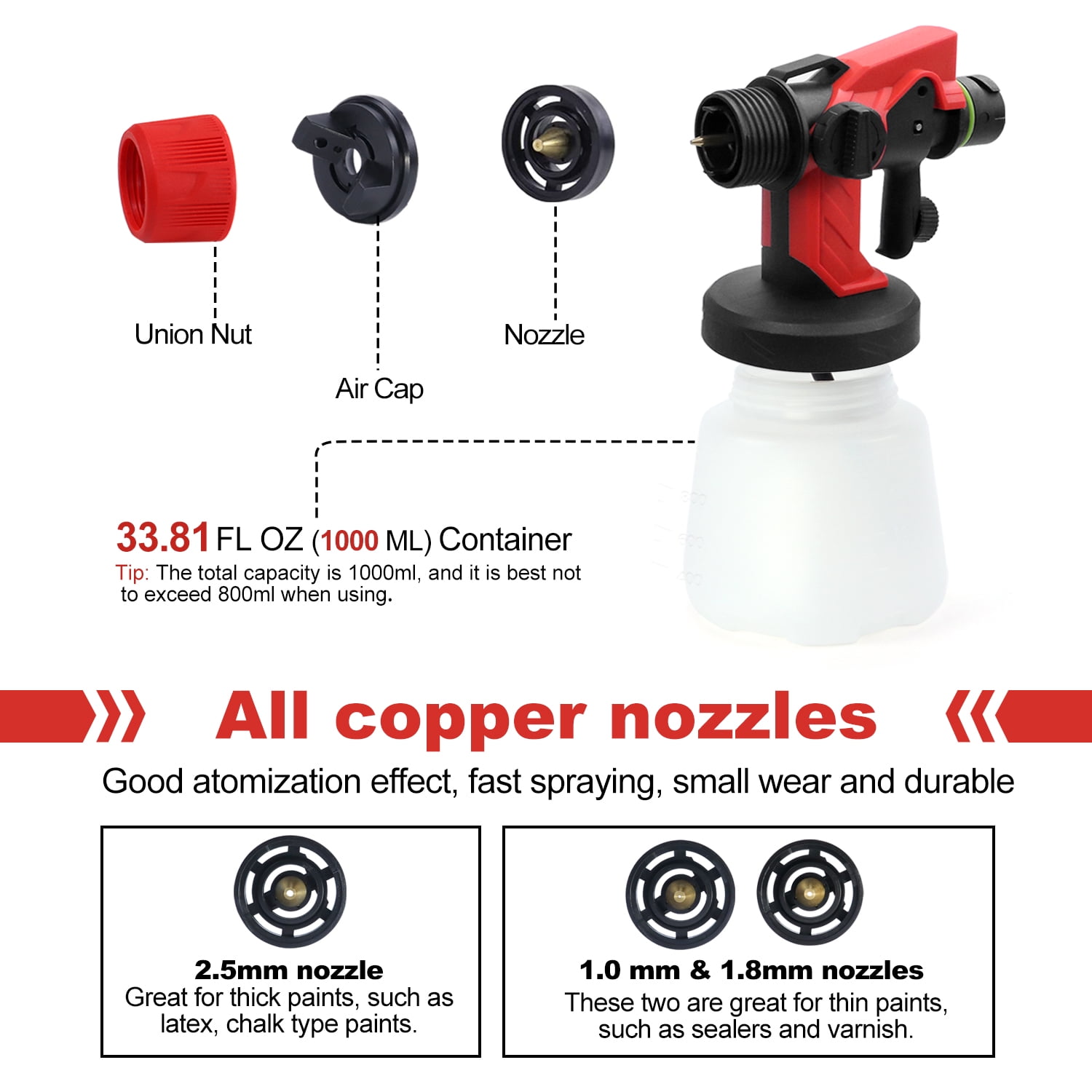 Amazon Com Enhulk Cordless Paint Sprayer With Brushless Motor 20v Electric Hvlp Paint Sprayer With 4 0ah Battery 800ml Container Spray Paint Gun Includes 5 Copper Nozzles 3 Spray Patterns For Home Outdoors
